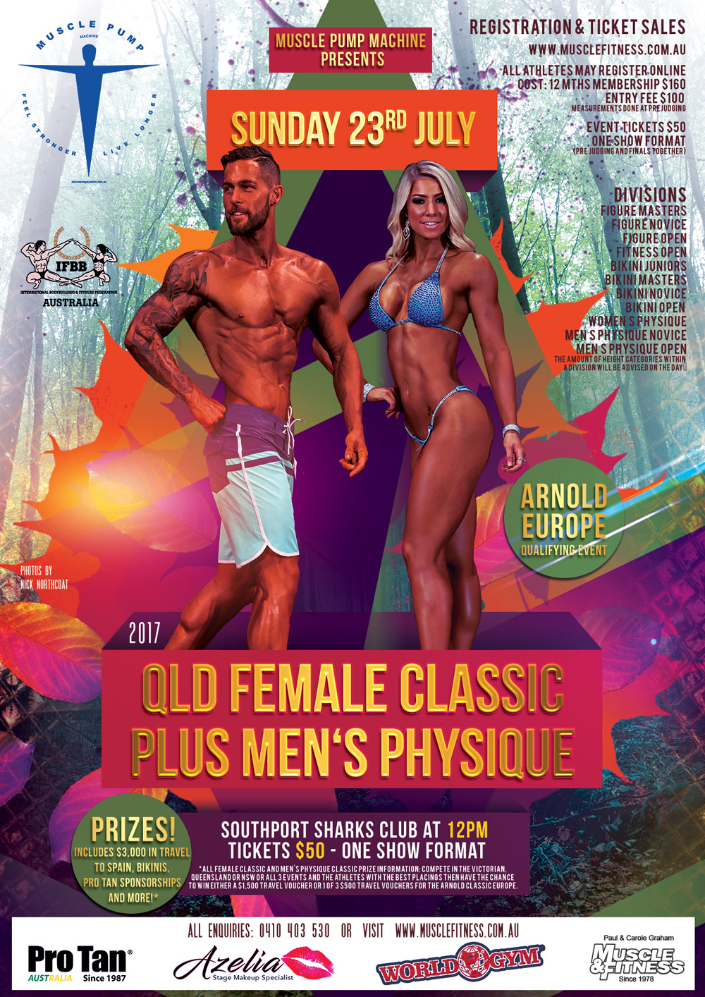 Competitor registration for the 2017 QLD All Female Classic plus Men's Physique on the 23rd July 2017. The entry fee to participate in this competition is $100.